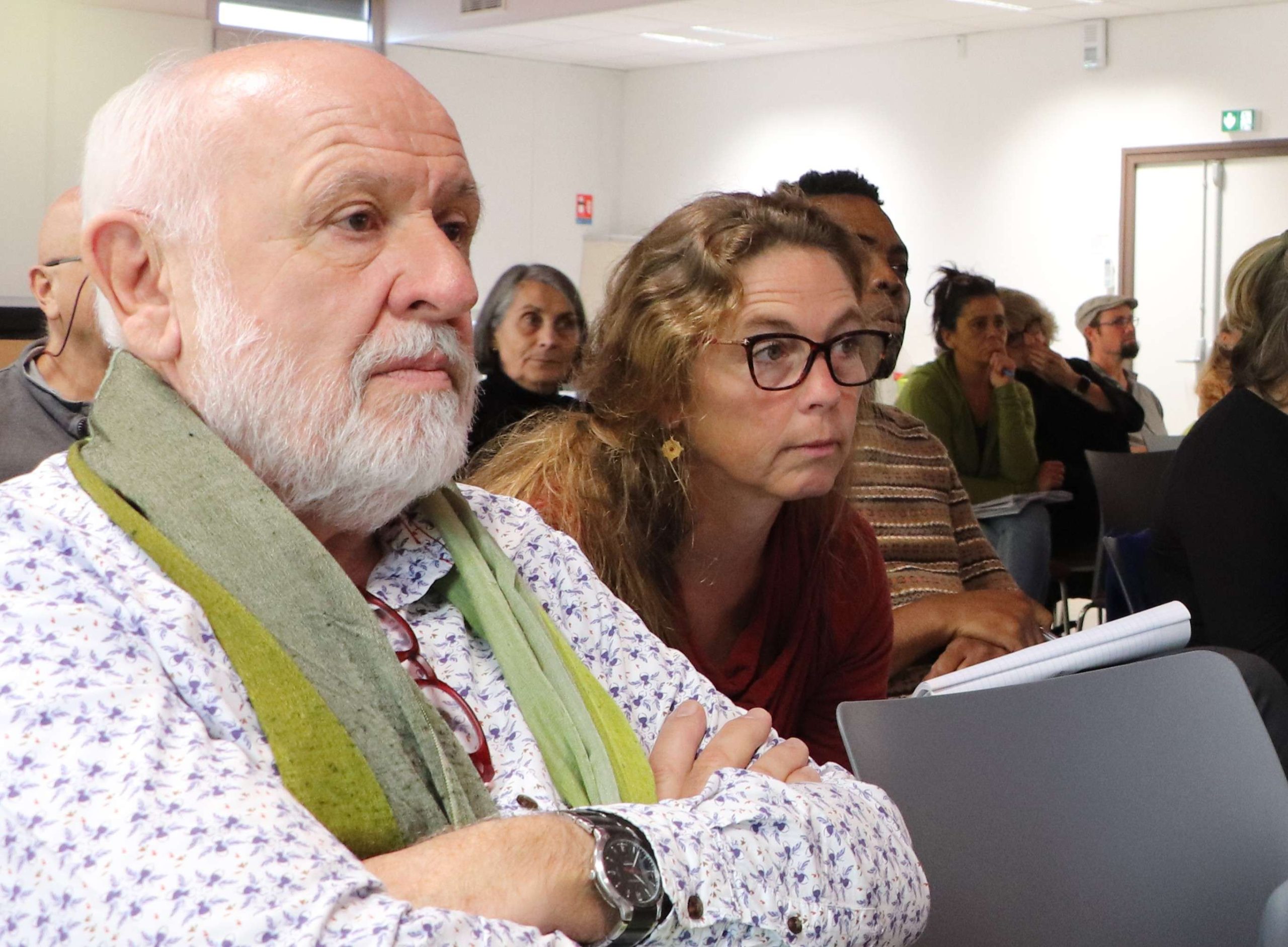 J’entends aussi une responsable financière me confier qu’elle a vécu la période du covid à l’Agence régionale de Santé, ce qui donne, dit-elle, une bonne idée des effets potentiels de l’impréparation dans une situation de crise. « Il faut qu’on se bouge », dit-elle. Une responsable de la culture, consciente du rôle de son domaine dans l’équation, relève les propos du conférencier sur l’importance du récit et des imaginaires, sur le recueil de l’expression des habitants. Sa collègue de l’urbanisme se réjouit de voir des élus présents « car à notre échelle, on ne peut pas faire grand chose s’ils ne sont pas avec nous ». D’autres encore partagent leur enthousiasme ou leur impression que « c’est du bon sens ».