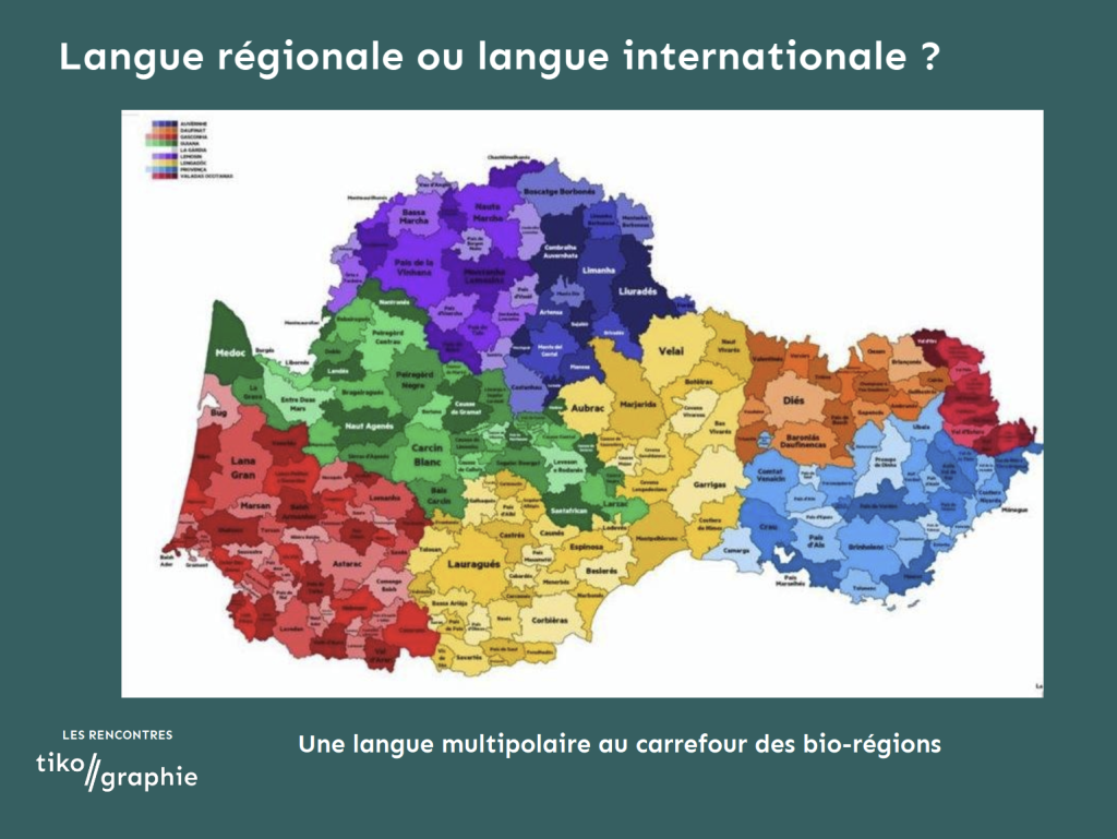 L’occitan, ou plutôt les multiples variétés du parler de la moitié sud de la France, ou encore le « patois » comme on disait dans les campagnes, scelle l’identité locale aussi solidement qu’un mur en pierre sèche : car chaque variante, souligne Antoine, l’animateur de la rencontre, en introduction, correspond à un « territoire vécu » recoupant peu ou prou le concept des biorégions. Même si Christian Omelhier assure que « la technique de la pierre sèche existe sur toute la planète sauf en Amérique du Nord, donc elle peut exister sans la langue occitane », il explique que les noms différents donnés en occitan à ces terrasses reflètent des techniques différentes en Auvergne, dans les Cévennes ou en Provence, liées à des reliefs, des climats et des usages différents.