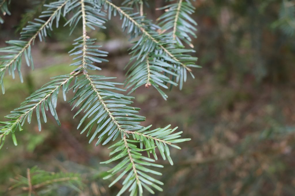 Dans vos balades en forêt, la distinction sera plus simple, car le sapin blanc présente sur certains rameaux des aiguilles disposées sur un seul plan, de part et d’autre de la branche. Il tient son petit nom du fait que le dessous de ses aiguilles est parcouru de deux bandes blanches. L’autre particularité du sapin, peu observable dans votre salon, le distingue encore plus sûrement : ses cônes sont orientés vers le haut, contrairement aux épicéas ou aux douglas, deux conifères présents ici en plantations pour la sylviculture.