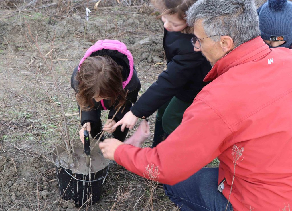 Il manque encore, peut-être, le plus important : l’étiquetage. Chaque arbuste est paré d’un petit bandeau portant le prénom de l’enfant qui l’a planté. Charmes, noisetiers, et autres petits arbres pourront ainsi, dans quelques années, accueillir des oiseaux, prodiguer de l’ombre dans cette grande plaine rase, contribuer à retenir l’eau dans le sol…
