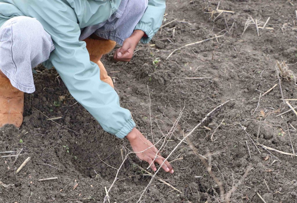- La première étape consistait à aller semer du blé dans un micro-champ, sous la conduite des bénévoles de l’association. Divisée en deux groupes, la classe a semé les graines, mais aussi planté des arbres, qui laisseront sur la ferme encore peu ombragée un souvenir plus durable de leur passage. En fin d’année, ils viendront découvrir et récolter aux ciseaux les épis de leur moisson.