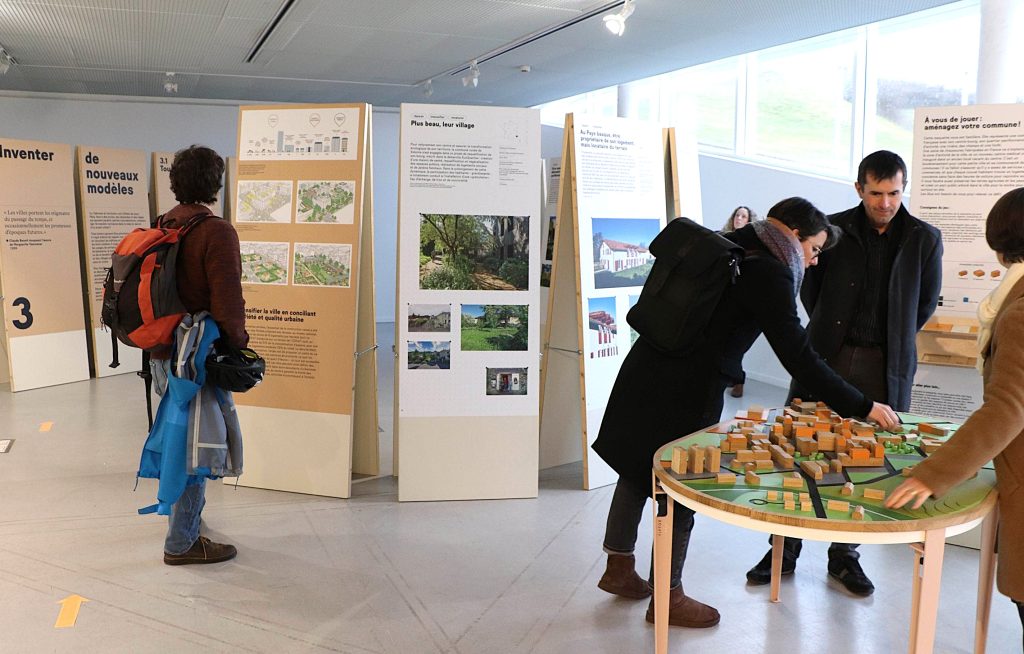 Il l’est tout de même encore par ceux qui promeuvent l’exposition, dont son commissaire Patrick Henry et les deux personnalités locales avec qui il a échangé au cours de la table ronde inaugurale, Stéphane Cordobes, directeur de l’AUCM, et Simon Teyssou, architecte, maître de conférences à l’ENSACF où se tient l’exposition. Leur inquiétude commune (et la nôtre) : comment faire accepter un changement radical de notre manière d’habiter le monde ? Originalités de l’expo : montrer des exemples concrets d’actions menées dans des localités de tous profils, et une vision qui part du sol, montré « en vrai » et dans sa profondeur, ce qui semble peu évident pour des urbanistes (on en avait discuté ici).