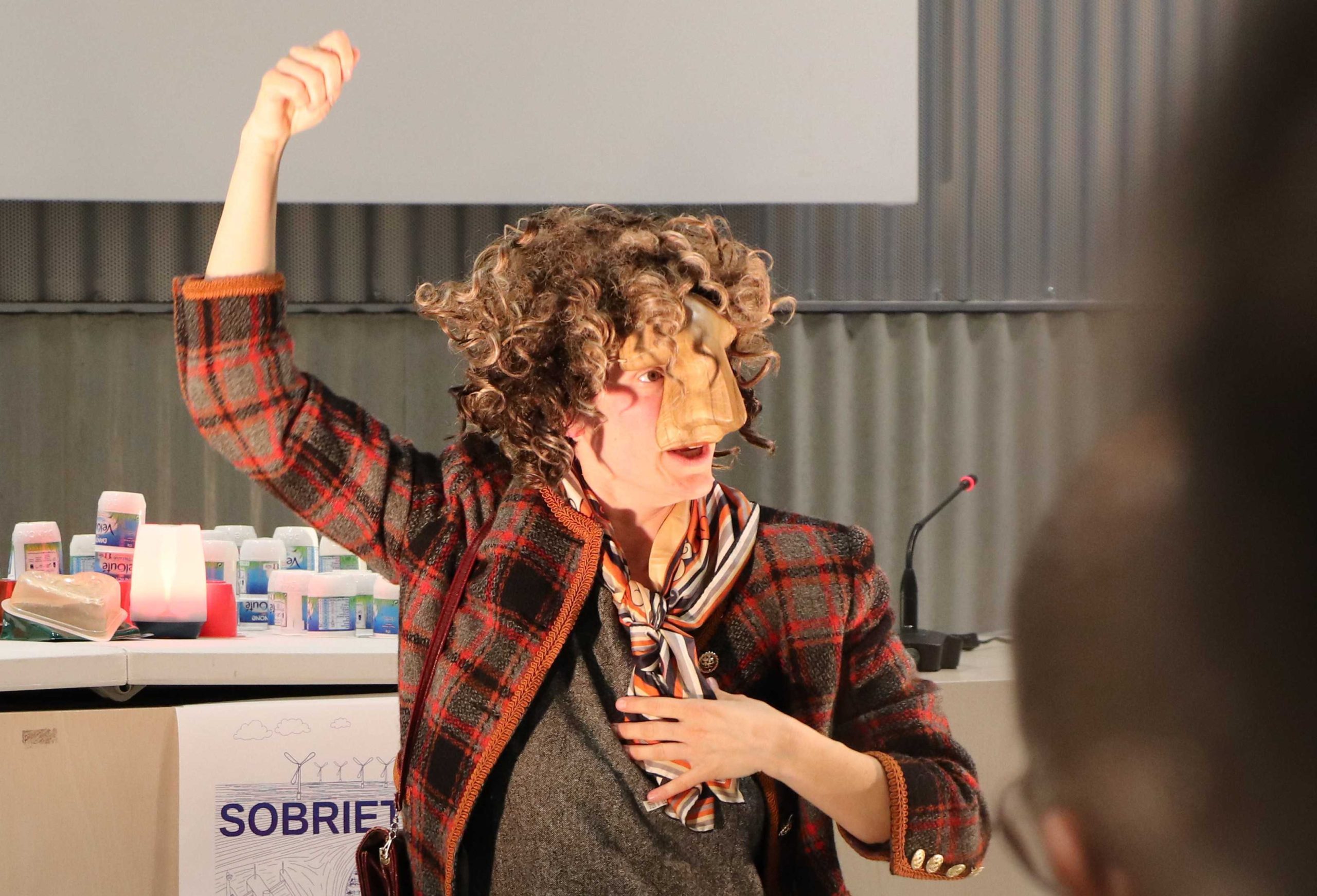 Car « Chicon-la-Vallée » est d’abord un spectacle. Imaginé, emmené, animé, incarné par une comédienne seule en scène, Amandine Fluet, fondatrice de la compagnie La Voyette. Seule en scène ou en n’importe quel endroit qui peut en tenir lieu : une place de village ou une école, une salle des fêtes, un café… Car le spectacle, très drôle, a aussi une vocation pédagogique : celle de raconter les problèmes, incohérences et dérives de nos façons d’occuper l’espace, d’artificialiser les sols et d’étaler sans retenue nos constructions humaines.