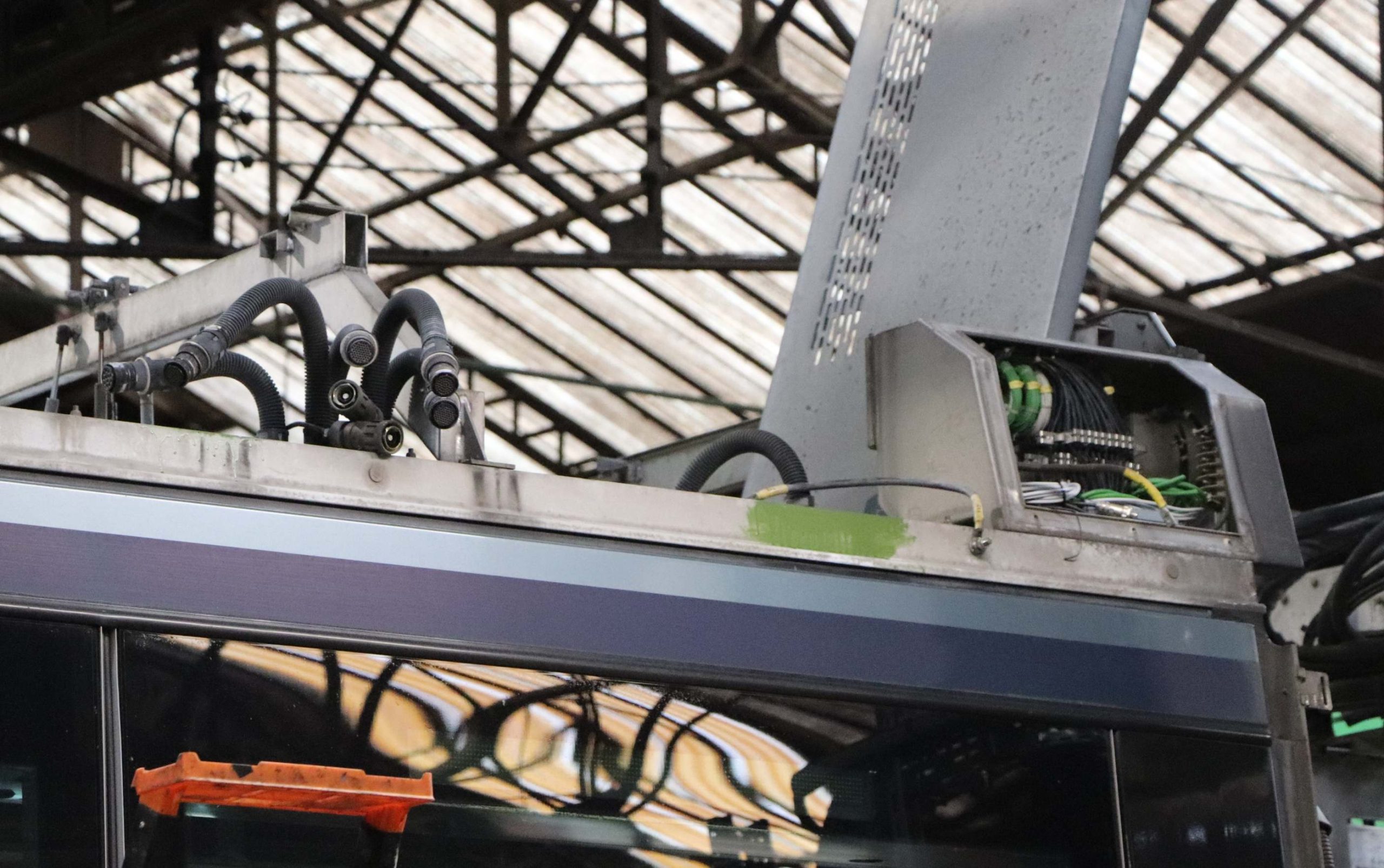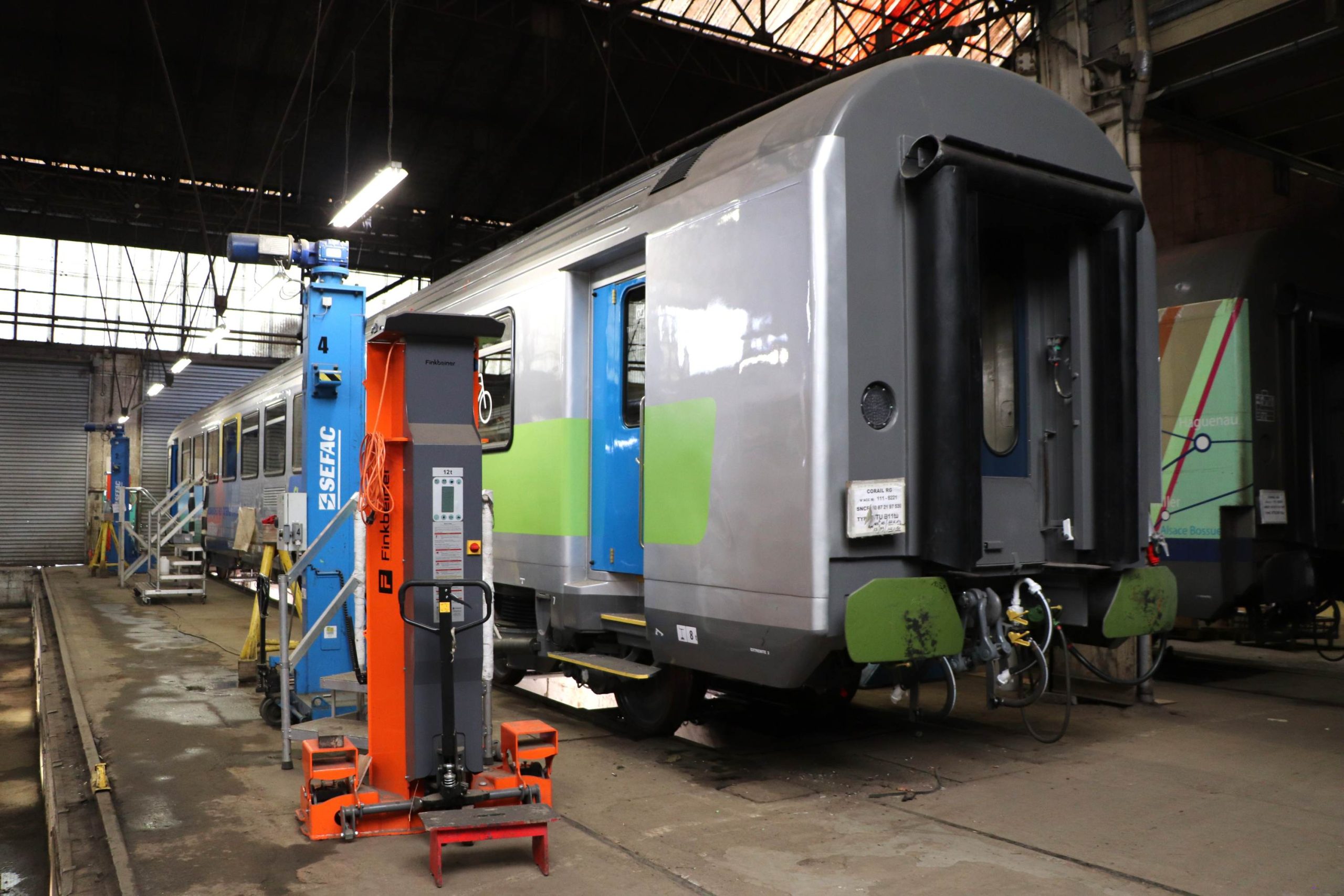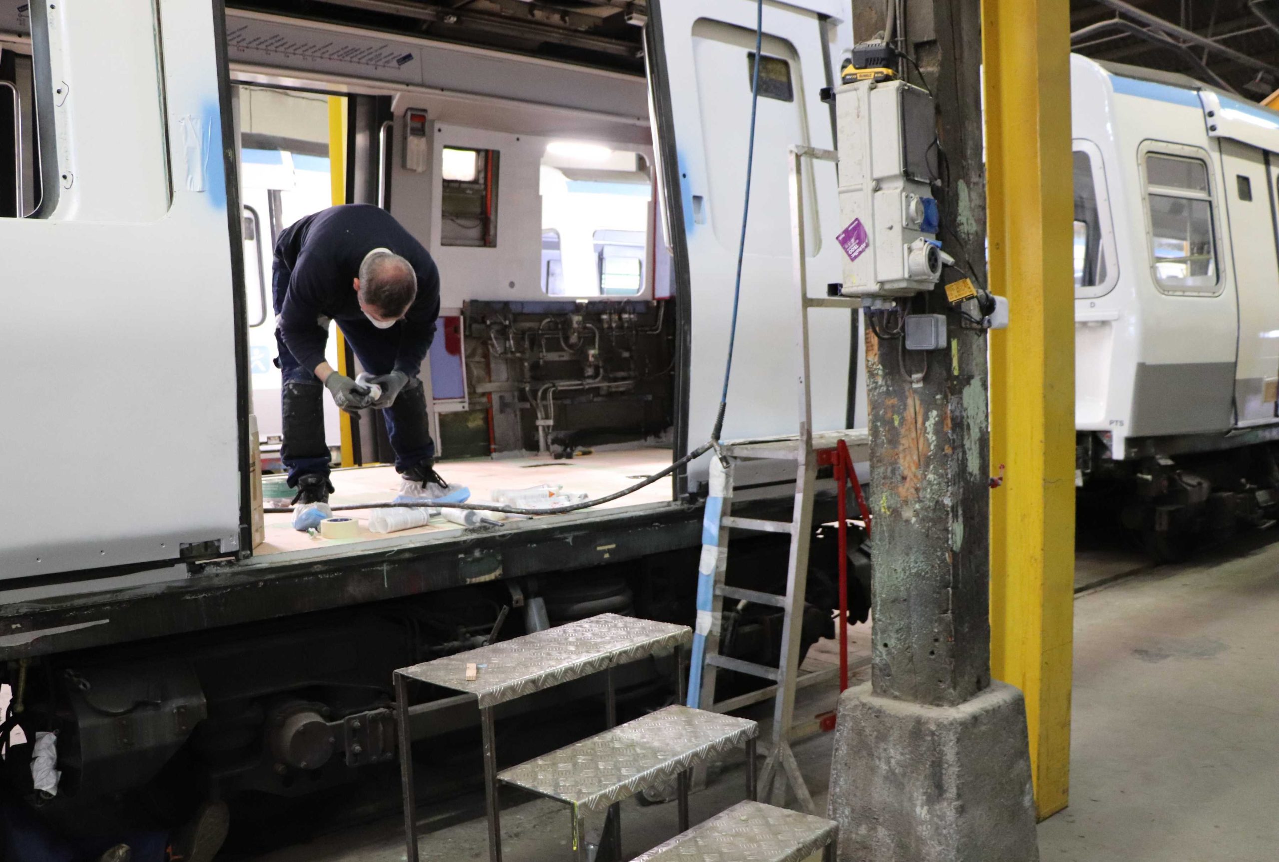 Loïc me précise encore que deux rames sont traitées en même temps, mais dans des phases de travail décalées. Et que chaque rame doit être rénovée en 45 jours, transport compris. Lequel se fait par demi-rame sur camion ; le genre de transport exceptionnel qui ne doit pas passer inaperçu si vous le croisez sur l’A89.