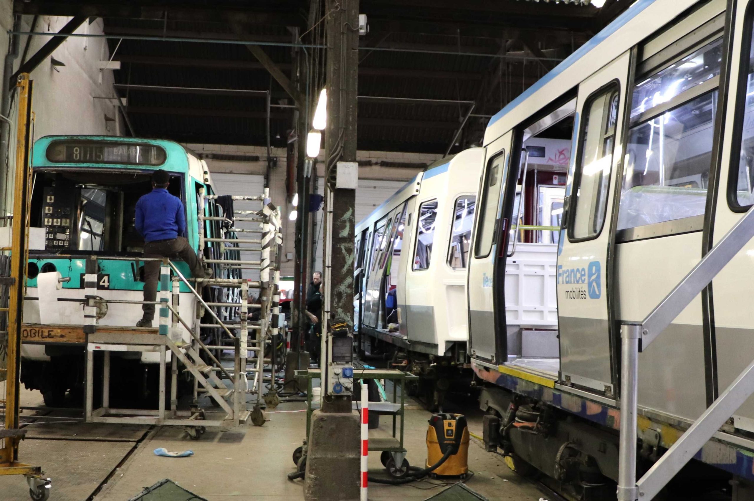 Reportage (texte et photos) Marie-Pierre Demarty, réalisé mardi 20 février. À la une : rames de métro de type MF77 en cours de rénovation dans un des hangars.