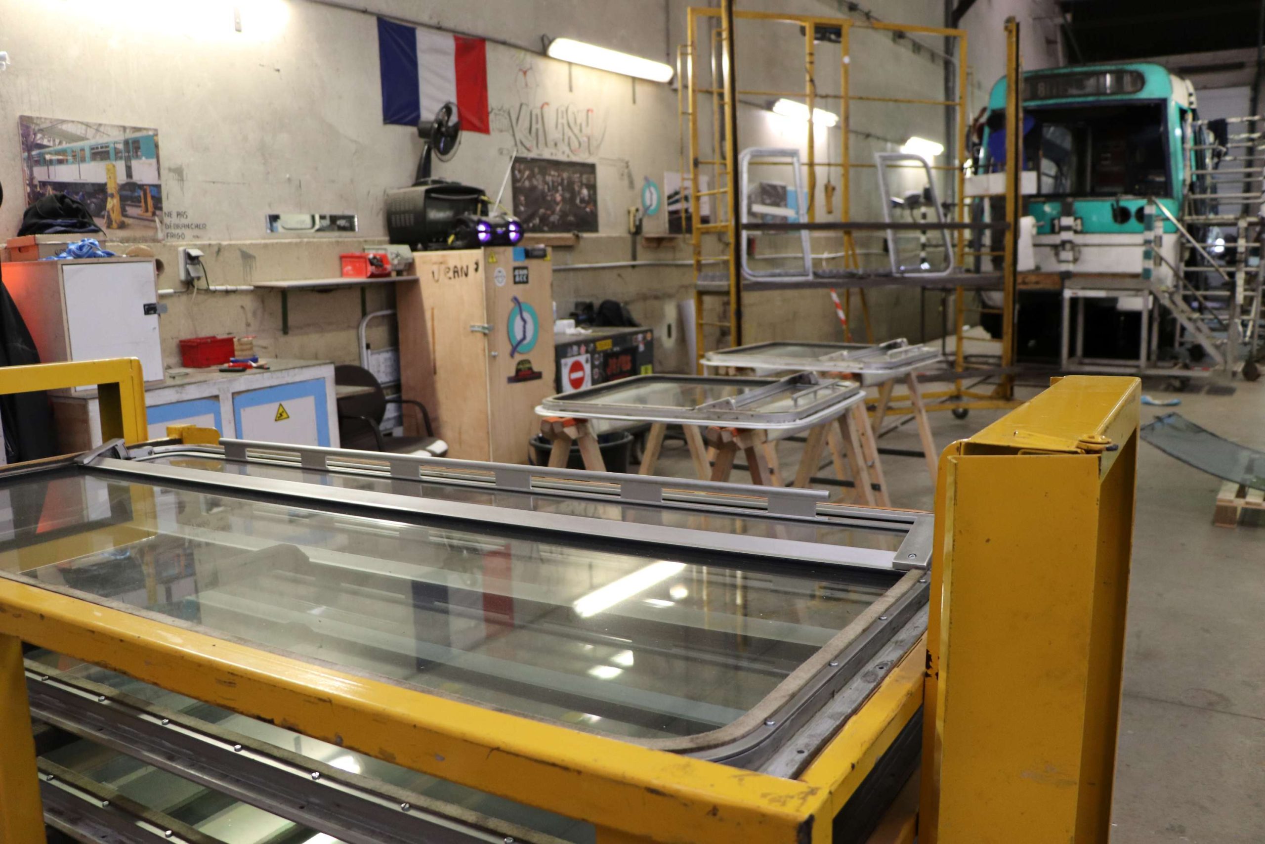 Usine n’est d’ailleurs peut-être pas le terme approprié, car ici on ne connaît pas la routine d’une chaîne de montage. « Chaque projet est différent et nous contraint à changer complètement la configuration de nos ateliers, en fonction de la dimension et de la forme des rames, du travail à y faire, de l’état des voitures, etc. C’est pourquoi nous avons beaucoup de matériel fabriqué en interne, conçu pour être mobile et adaptable », m’explique Loïc Dugay, l’un des chefs de projet, qui me sert de guide dans la visite de cette entreprise d’upcycling hors normes.