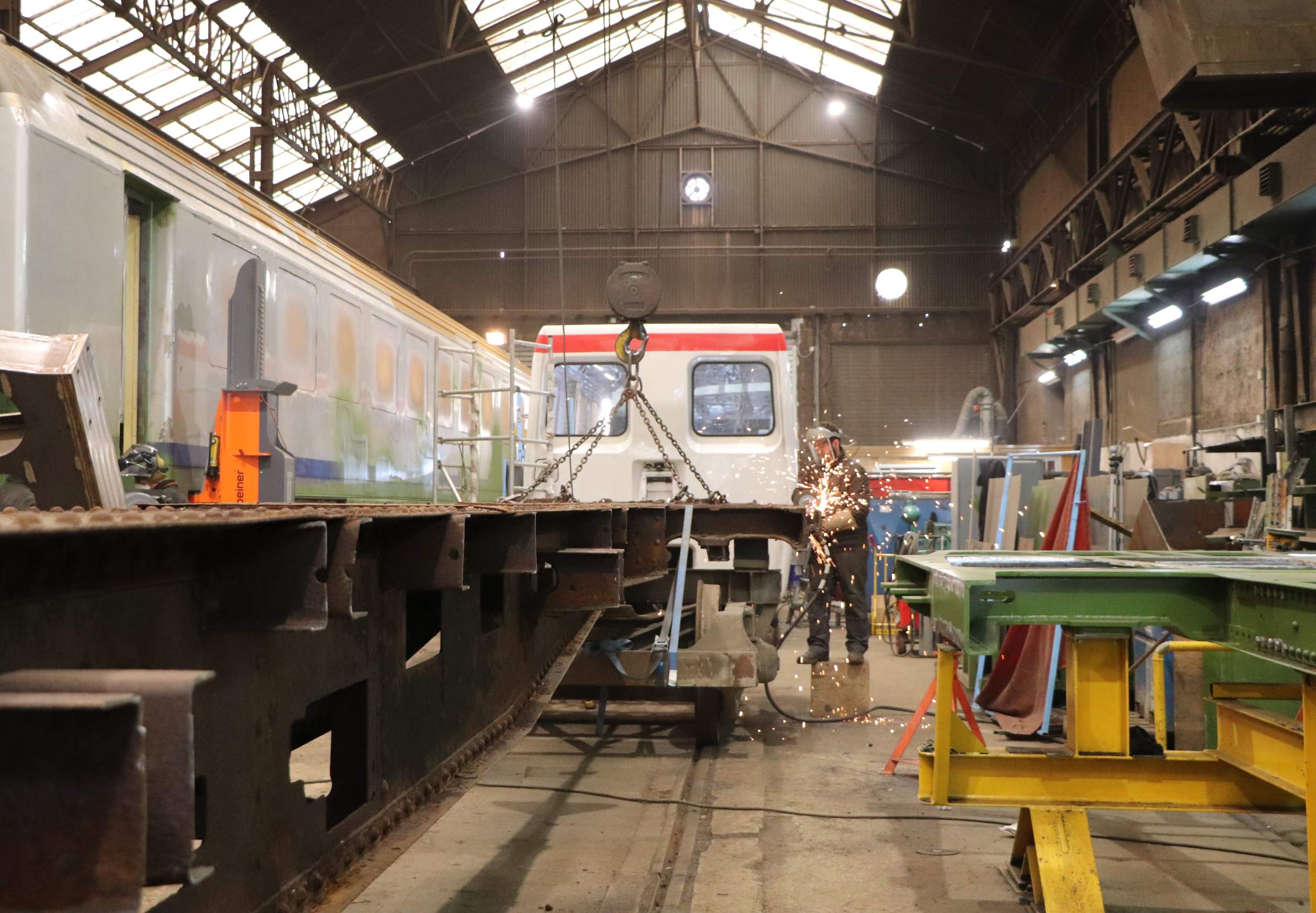 Quel matériel par exemple ? Et quels travaux ? Suivons le guide pour le découvrir. Car en une seule visite, nous avons l’embarras du choix dans les exemples. Sous les différents hangars, l’usine est équipée d’une centaine de rails, pouvant tous accueillir une rame ou un bout de rame pour du travail opérationnel. Soit plus ou moins une vingtaine de projets menés en parallèle, petits projets rapides, chantiers plus importants et défis en tous genres.
