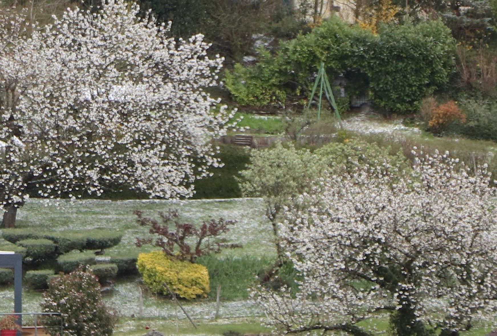 14-15 mars.- L’hiver arrive enfin ! Le froid et (au moins en altitude) la neige s’invitent en week-end. Certes, les giboulées de mars nous réservent toujours de petites surprises. Mais cette année, ça arrive après une période de grande douceur et de floraisons tous azimuts. Froid, gels et neige encore plus présents dix jours plus tard. La végétation et notamment les arbres fruitiers n’aiment pas trop les gelées tardives, encore moins les printemps précoces. Verdict au moment des récoltes…